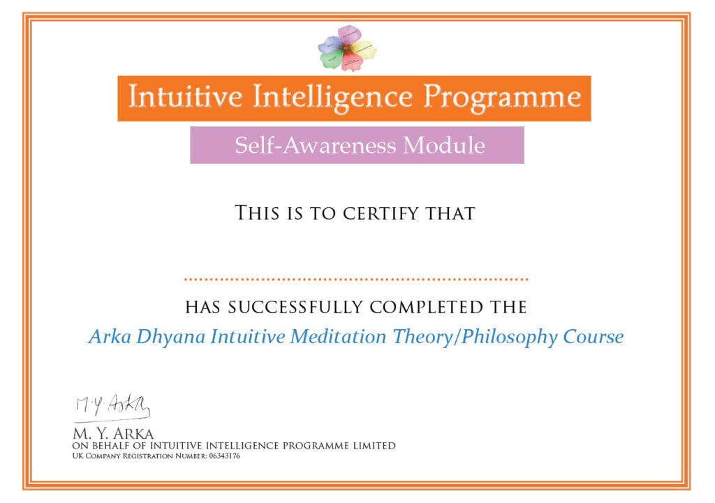 Upon successful completion of all three online tests (Level 1, Level 2 and Level 3), get Certification for Arka Dhyana Intuitive Meditation Theory.